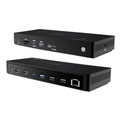 2 x 3840 x 2160@60Hz1 x HDMI 2.1, 1 x DP 1.41 x USB-A, 2 x USB-C1x Gigabit EthernetLa station d'accueil de voyage Lenovo USB-C pour deux écrans est incontournable pour tous les professionnels modernes et en déplacement. Ce puissant accessoire compact prend en charge deux écrans 4K et alimente votre ordinateur USB-C jusqu'à 100 W grâce à la technologie Power Delivery (avec un adaptateur USB-C supplémentaire de 135 W). Son châssis conçu à partir de 66% de contenu recyclé post-consommation est parfait pour réduire votre empreinte carbone.N'oubliez pas la gestion des câbles ajustable, qui vous permet d'allier efficacité et côté pratique à la perfection. Il vous permet de résolument booster votre productivité à la maison, ou travail ou partout ailleurs. CLAUSE DE NON RESPONSABILITÉ: les stations d'accueil USB-C et Thunderbolt Lenovo sont compatibles avec les ordinateurs portables qui prennent en charge les protocoles USB-C Alt-Mode ou Thunderbolt par le biais de leur port USB Type C.Pour vérifier si la station d'accueil est compatible avec votre système.